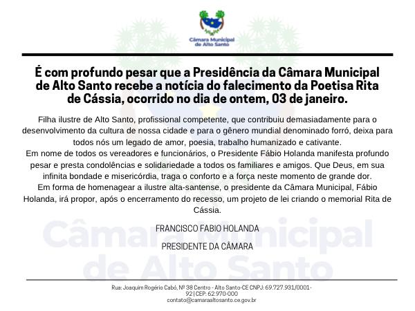 Saiba mais em: https://www.camaraaltosanto.ce.gov.br/