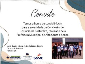 CONVITE PARA A SOLENIDADE DE CONCLUSÃO DO 1° CURSO DE COSTUREIROS