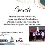 | CONVITE PARA A SOLENIDADE DE CONCLUSÃO DO 1° CURSO DE COSTUREIROS | ![]() | Ver |